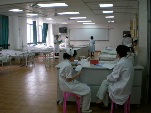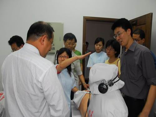 台湾中山医学大学代表团有眼视光专业、康复专业和护理专业专家一行9人,他们兴致勃勃地参观了52AV 的08届毕业生技能考核。代表团团长、该校医学科技学院院长蔡淦仁详细了解了52AV 护理专业年招生量、人才培养和毕业生就业等多方面信息,并就实践教学环节与52AV 进行了交流,觉得我校的理论—实验—见习—实习等一体化教学模式做得比较到位,情景教学模式也不错,值得交流和探讨。