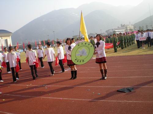 11月8日上午,第三十四届校运会在温州医学院茶山校区田径场隆重开幕。赛场上彩旗飘扬、彩球招展、白鸽纷飞,绘有奥运福娃的大型展架“心系北京奥运,创建和谐校园”醒目地立在旗杆两旁,运动员们朝气蓬勃、活力四射、激情高昂。千余名来自各二级学院、附属医院和校部机关师生员工组成的36支代表队参与决赛,共逐60余个比赛项目。