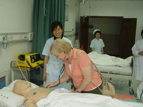 6月8日上午,温州医学院院长国际顾问拉里·克劳森(Larry Clausen)伉俪参观52AV 。在7C306会议室,52AV 副院长姜丽萍教授向客人们介绍了学院的历史沿革和发展情况。宾主双方在友好的氛围下进行交谈,就护理领域教学、科研合作,师资互访等进行初步洽谈。随后,客人们兴致勃勃地参观52AV 的实验室。在护理综合训练实验室,拉里·克劳森(Larry Clausen)伉俪饶有兴趣地拿起听诊器听SIMAN模拟人的心跳和呼吸音。参观过程中,他们对52AV 的实验条件和设备非常满意。