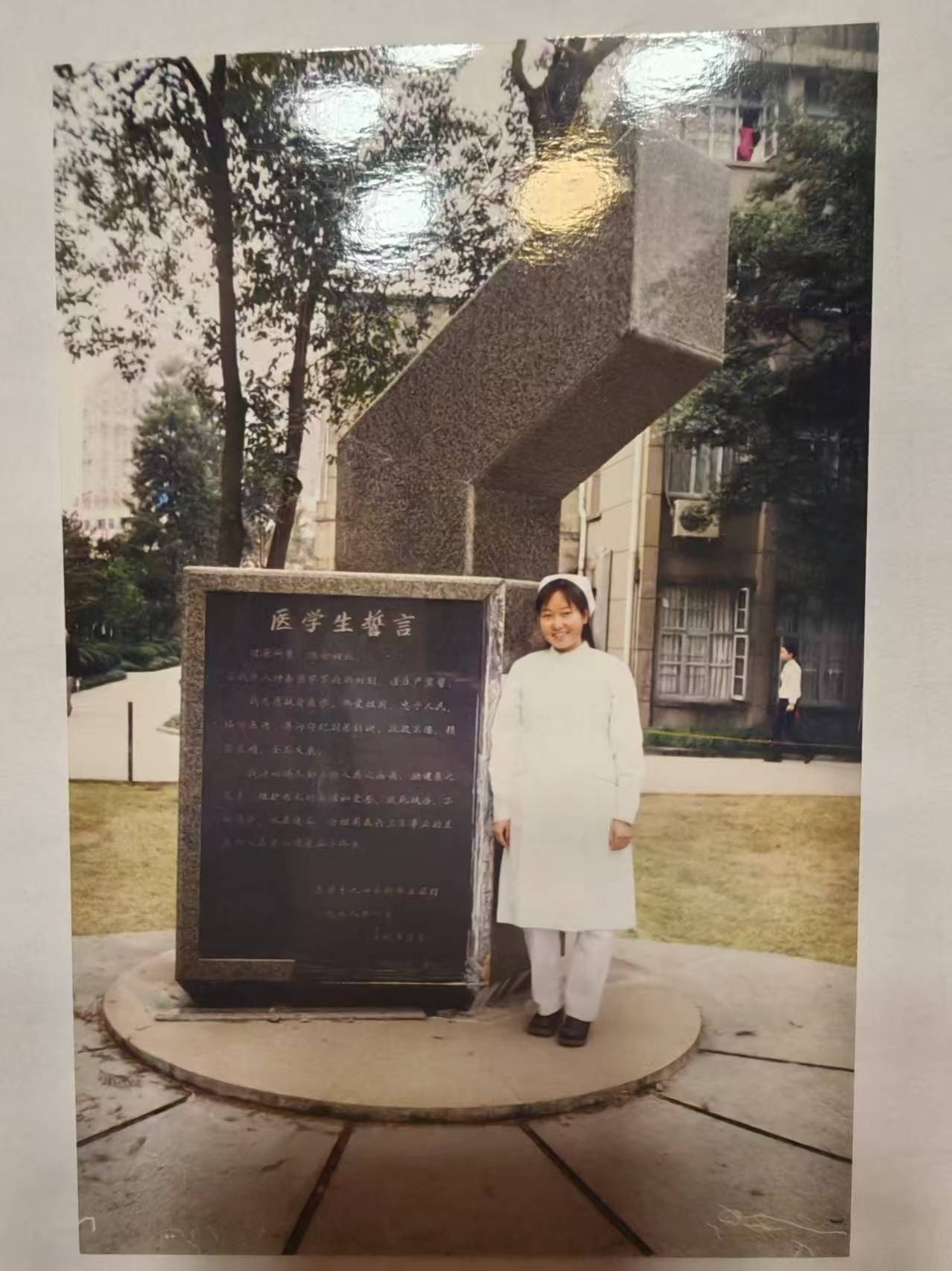 当谈及护理工作生涯时,大到全民抗疫情,科室里默默无名的同事纷纷在请战书上签下自己的姓名,以名做状;邻国地震,前往前线,顶着一波又一波余震,以震为号。而在ICU科室即使见惯了这样的“大场面”,任也会被“平凡人”不息的生命力而感动。是六旬阿婆在遭遇意外后只能靠机器维持生命体征,在所有医护人员共同努力下,从鬼门关回来后又因药物过敏爆发全身药疹,皮肤溃烂,在那个医疗条件不那么好的年代,是众人借来医院烤被架,每小时一次的精心涂药,让病人得以痊愈。在护理工作中是细节的堆积换来病人的康复,平等用心对待每一位病人,让护理之光照亮患者的往生之路。