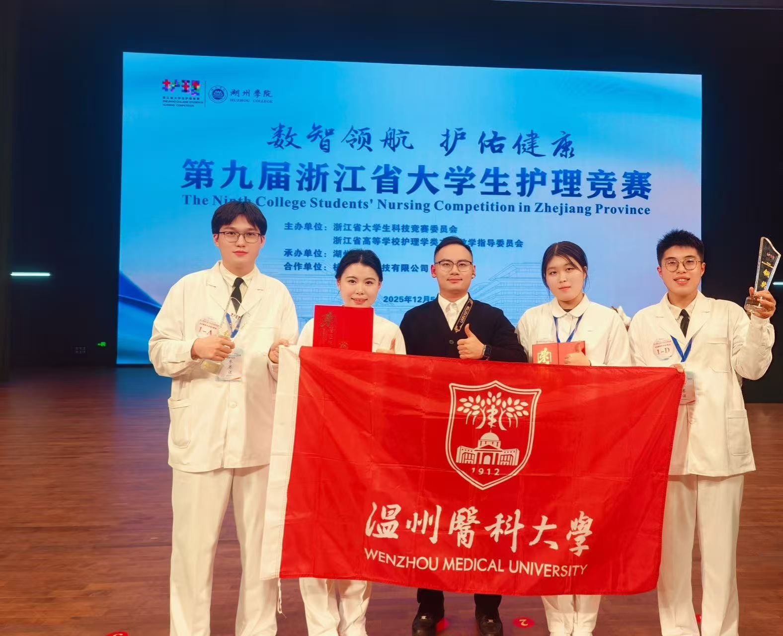 12月5日至6日,第九届浙江省大学生护理竞赛在湖州学院圆满落幕。本次竞赛以“数智领航,护佑健康”为主题,吸引了全省16所高校84支代表队同台竞技。52AV 高度重视,学院院长蔡福满亲自带队,共派出13支队伍,覆盖技能赛道(护理技能组、助产技能组)、创新赛道(专业创新组、非专业创新组)全类别竞赛项目。凭借统筹部署、指导教师团队的一体化精准指导,及全体参赛学子的奋力拼搏,各代表队凭借扎实的专业功底、创新的实践理念和默契的团队协作,斩获“二金两铜”的优异成绩,52AV 荣获“优秀组织奖”,彰显出温医护理一体化人才培养的丰硕成果与师生奋进向上的精神风貌。