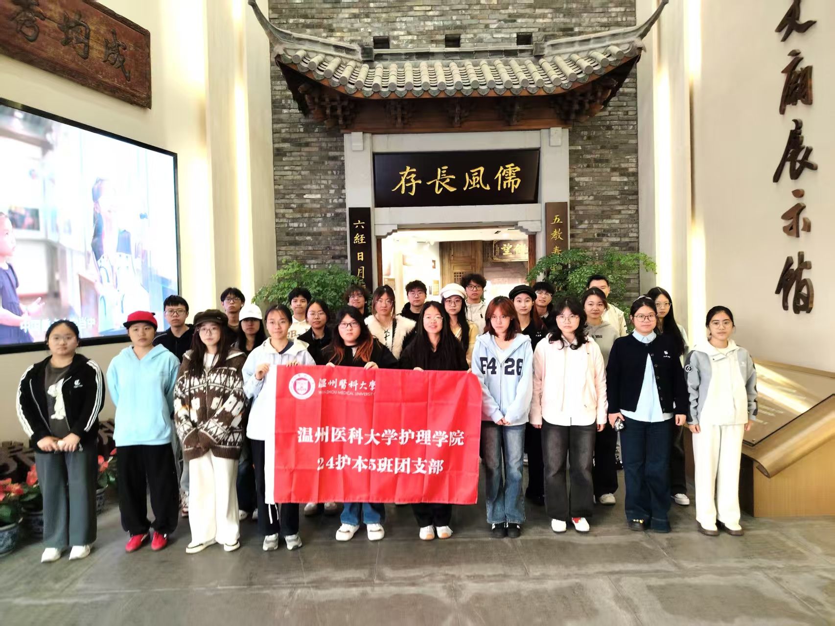 在深耕红色文化的同时,学院注重在历史传承中筑牢精神根基。同学们走进温州府学文庙展示馆,在千年文脉中体会“崇文重教”与家国情怀的绵延;在东海贝雕艺术博物馆和海窑艺术中心,从非遗技艺中感受匠心与坚守;在郑家园麦麦酒体验基地和山根艺术小村,通过亲手体验传统工艺,感悟红色文化滋养下乡土情怀与时代创新的融合。这一系列融入红色基因的“传统文化实践”,进一步增强了学生对民族精神与本土文化的认同,坚定了听党话、跟党走的信念。