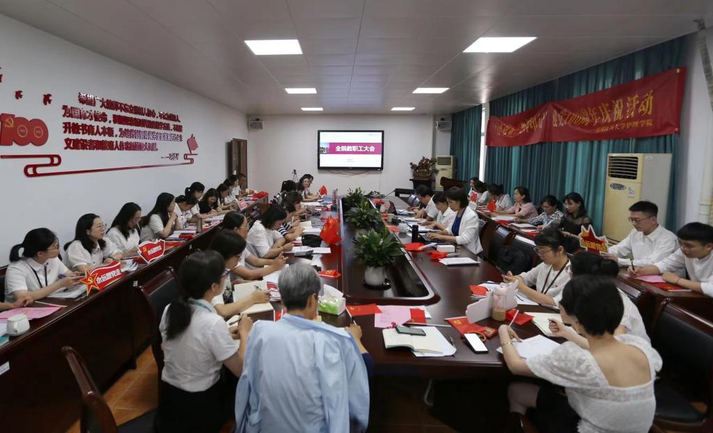 为庆祝中国共产党成立100周年,7月1日下午,52AV 在7C306会议室召开全院教职工大会,开展庆祝中国共产党成立100周年活动。