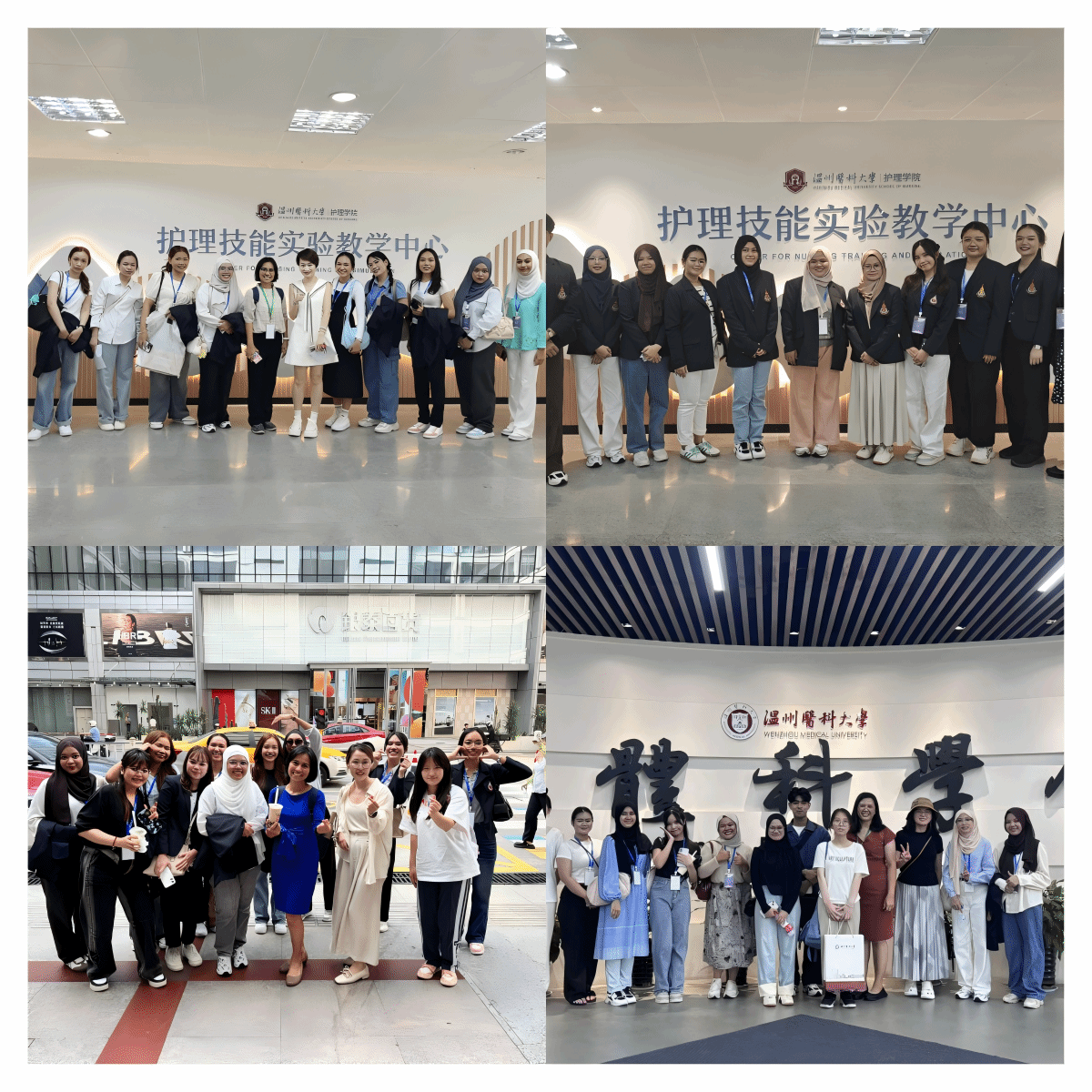 两批代表团分别由宋卡王子大学Kesorn Promlek教授与Pimpisa Saksorngmuang教授带队,包括20名护理专业学生组成。本次学术交流围绕“学术交流-临床见习-文化体验”三大主线展开活动。学术交流方面,代表团参观52AV 校史馆、人体科学馆及护理实验室,并围绕实验教学创新与实验室师生展开专题研讨。临床实践方面,代表团赴52AV 附属医院参访交流。附属第一医院梁世耀护士长,附属第二医院、育英儿童医院张春梅副院长,附属康宁医院吴春华主任,茶山街道卫生院贾建新院长等率护理团队热情接待代表团。各附属医院结合自身特色展示护理专业优势,并表达了与泰国宋卡王子大学深化合作,系统推进教育资源共享、学术成果共育与医疗技术互通的意愿。文化体验方面,在52AV 教师和志愿者陪同下,代表团游览五马街历史文化街区,感受温州传统商业文化与南戏文化。