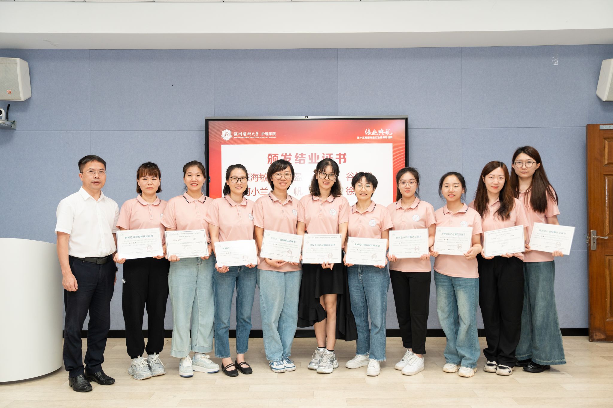 9月19日下午,第十五期温州国际造口治疗师学校培训班结业典礼在52AV 茶山校区召开。来自香港、澳门等全国各地的20余名学员经过近3个月的理论学习与临床实践,顺利通过考核,获得国际造口治疗师(ET)证书。