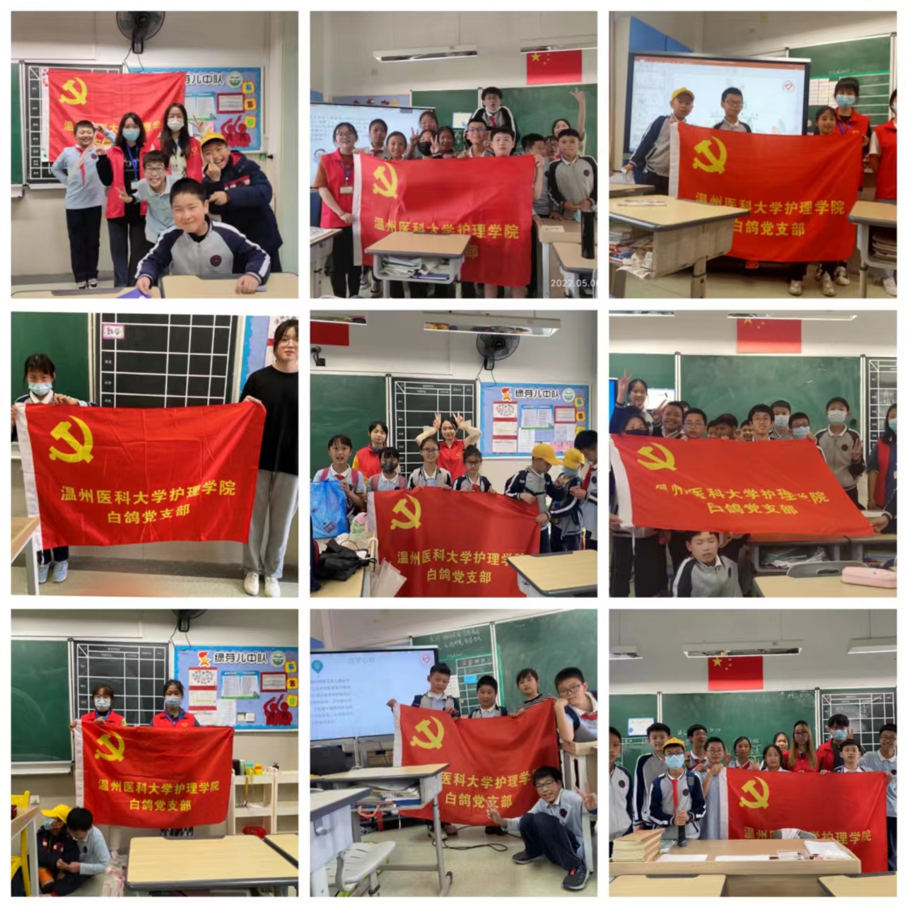 文明城市的创建,离不开大小朋友们的共同努力,52AV “生命守护”小课堂采用“大手拉小手”的课程形式,充分发挥护理专业学生的特长优势,以实用的急救技能用通俗易懂的语言以及实操的练习,帮助小朋友培养应急救护意识,指导孩子们镇定、妥善处理类似于烫伤、溺水、心脏骤停、噎食等意外事故,共同助力温州市文明城市创建。