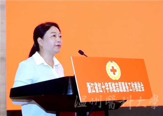 近年来,我校红十字会大力弘扬“人道、博爱、奉献”精神,充分发挥医学院校的专业优势,全方位推进“关爱生命”志愿服务项目。本次推进会上,我校附属第二医院红十字应急救护志愿服务队作为突出贡献红十字志愿服务团队代表、我校公共卫生与管理学院“红十字.生命相髓”志愿队指导老师丁娜妮代表突出贡献红十字志愿者参与了现场表彰环节。下一步,学校将以本次推进会为契机,在工作中进行积极探索,以更加开阔的视野和超前的思维,推动学校红十字志愿服务工作取得更大的成绩。