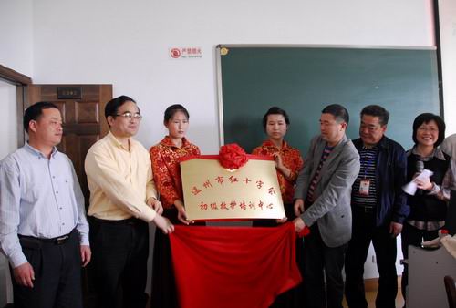 如果老人在家中突发心肌梗塞,该怎么办?如果在灾害现场面对待救伤患又如何处理?4月15日上午,温州市红十字会救护培训中心在我校挂牌成立,将充分利用我校52AV 资源,面向社会各界有兴趣学习急救技能的人士进行专业培训。