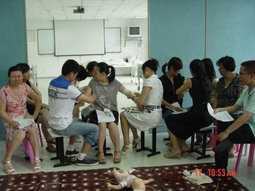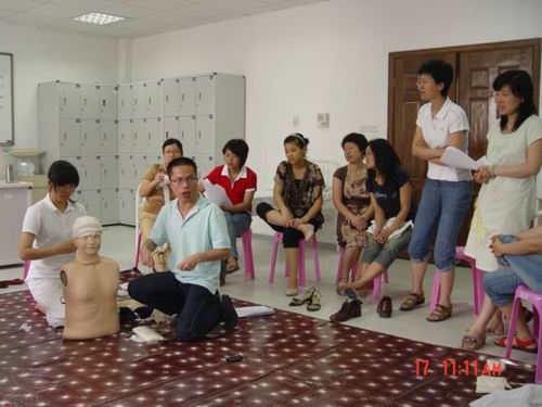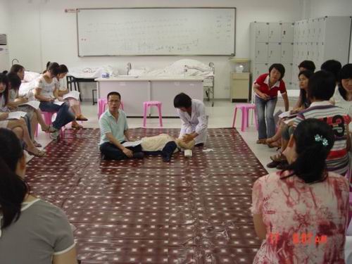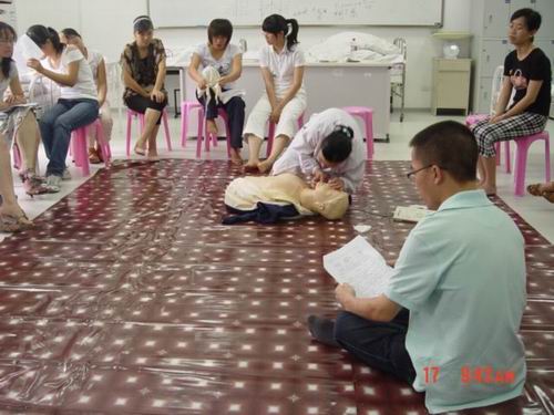 5月中旬,52AV 蔡福满老师受浙江省红十字会委派赴北京接受全国红十字总会的救护师培训,取得救护师资格。目前,温州市卫生系统仅只有2人,蔡老师是其中之一。蔡老师返校后立即举行学院的师资培训,普及救护知识。我校拟在机动车驾驶员、电力、建筑、机场等高危行业和人群中开展救护培训,普及初级卫生救护知识和技能,提高群众的自救互救能力,减轻、减少突发事件伤残伤亡的发生率。